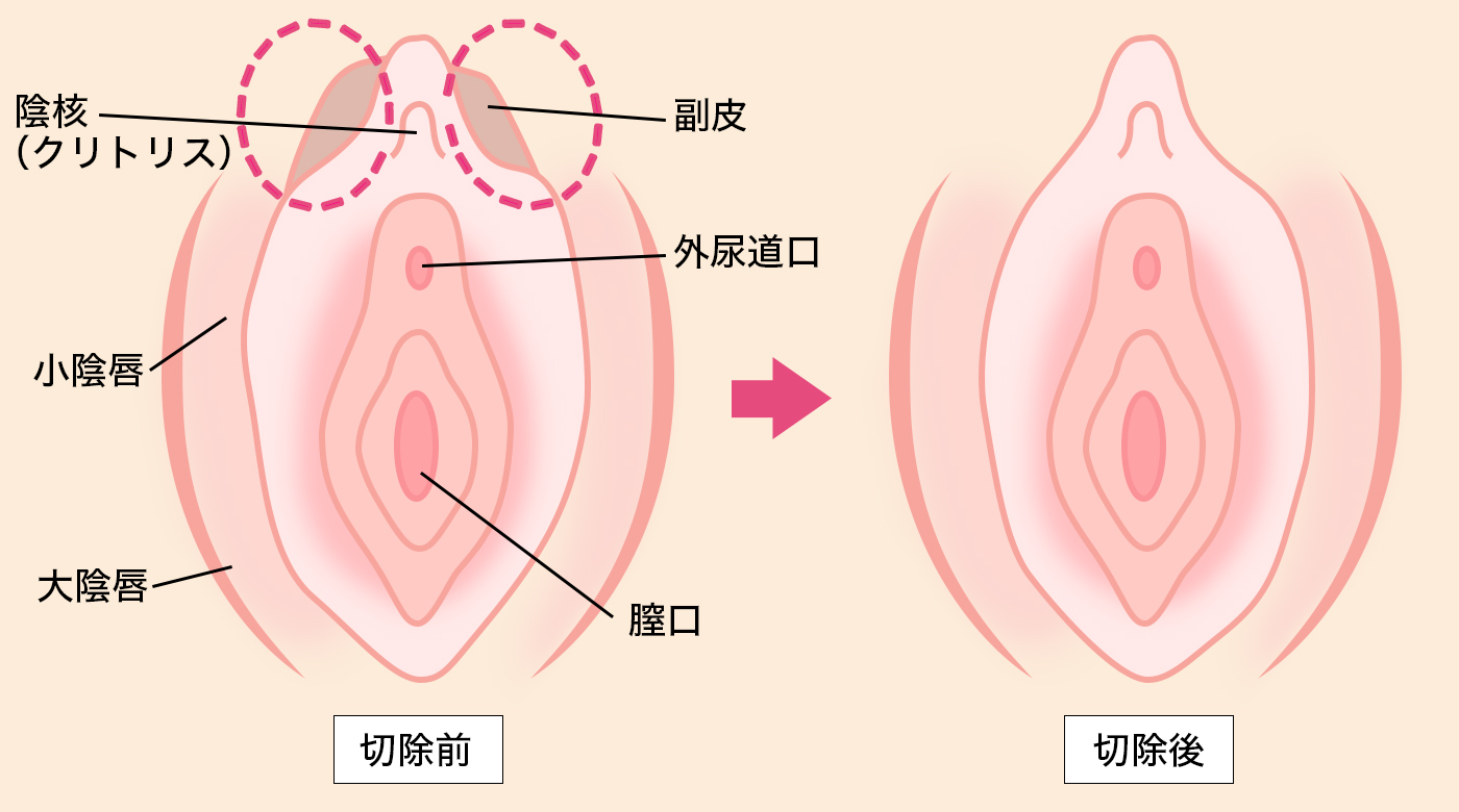 また、過度な副皮の肥大により、クリトリスを覆っている場合などは、不感症の原因ともなりますので、適宜除去する必要があります。