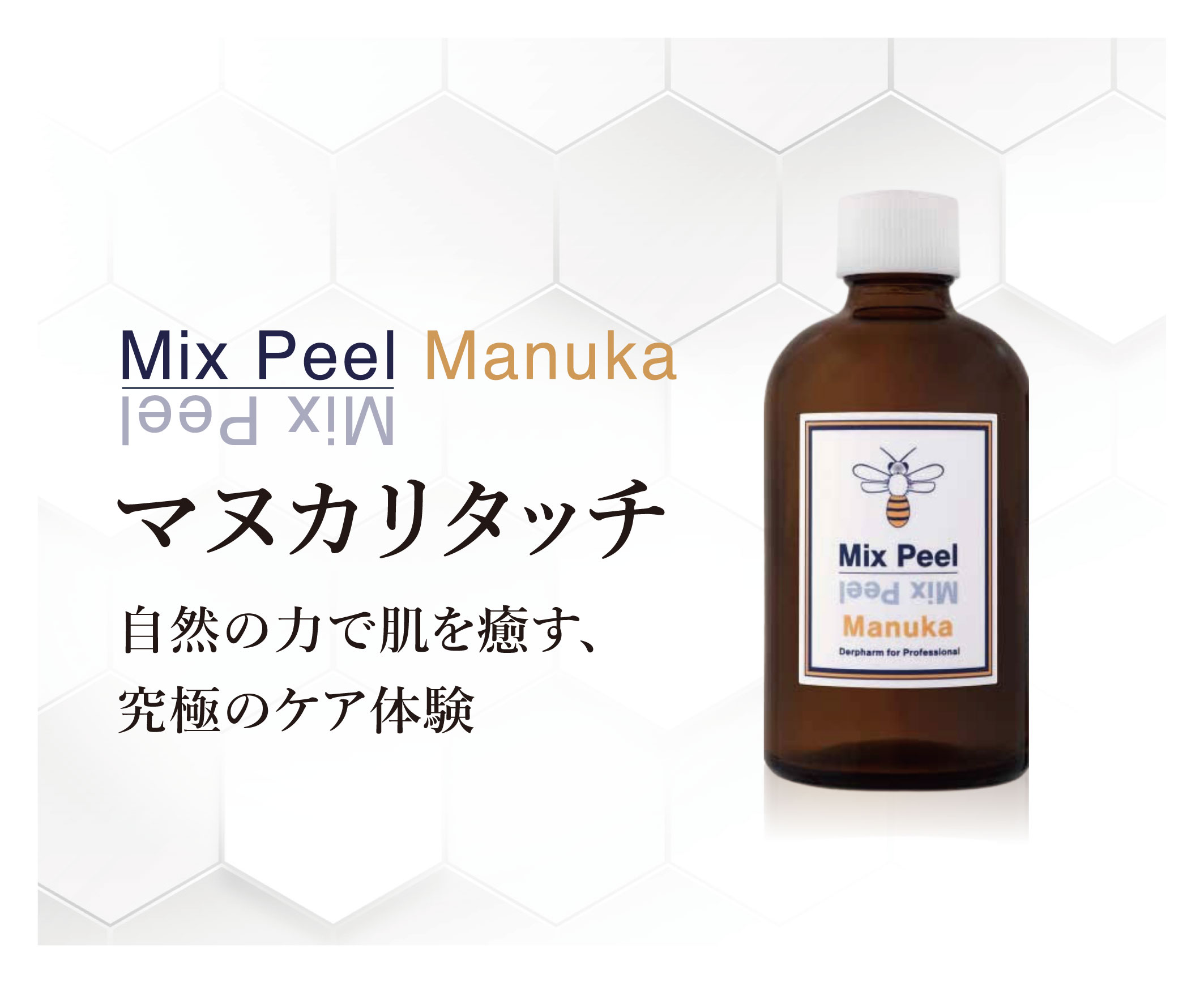 AHA約40%(乳酸・グリコール酸)にBHA(サリチル酸)にマヌカハニーを配合しニキビ、肝斑、くすみ、雀卵斑、炎症後色素沈着、小じわなど様々なお悩みに適応がある治療となります。マヌカハニーは、抗生物質であるメチルグリオキサールが高濃度で含有されており、他のハチミツよりも高い抗菌性を有しています。