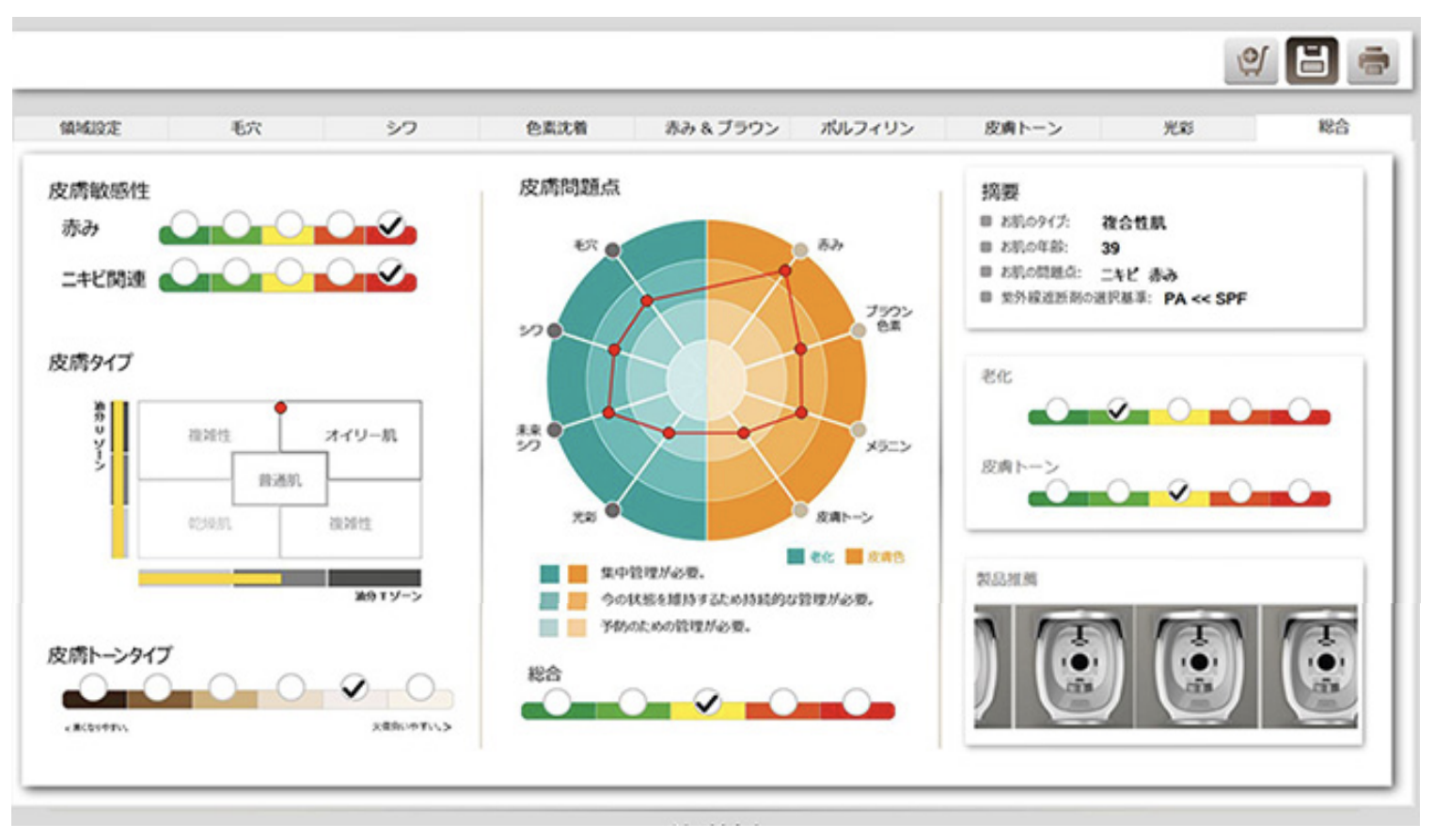 肉眼では見えない隠れたシミ・シワを確認することが出来、お肌状態にあったスキンケアを選択いただけます。