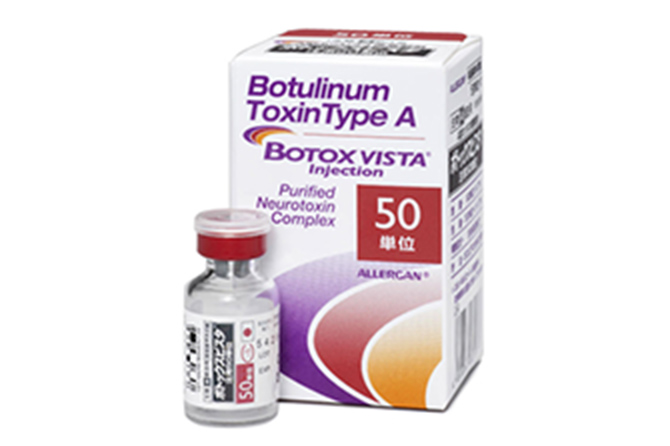 アラガン社製のボトックスビスタ®は、厚生労働省に認可され、国内で唯一の承認薬となった安全性、効果ともに信頼性の高い製剤です。