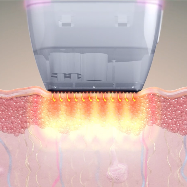 モノポーラによるRFエネルギーを真皮深層まで熱を届け引き締め、バイポーラで肌表面から真皮浅層を引き締めることによって、コラーゲンが収縮し肌を引き締める効果が期待できます。