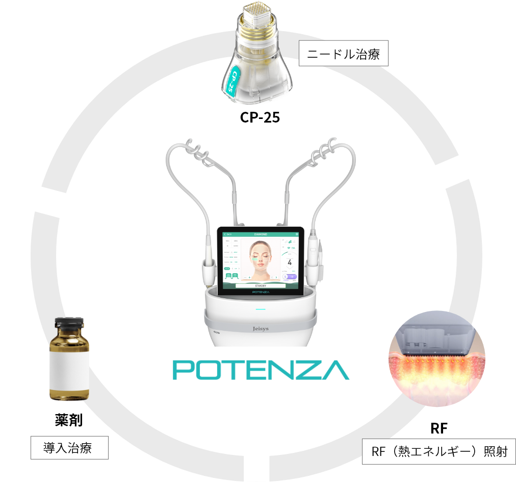 ポテンツァは、微細な針(マイクロニードル)で繊維芽細胞を刺激すると同時に、高周波(RF)エネルギーを皮膚に届けることができる革新的な治療です。
