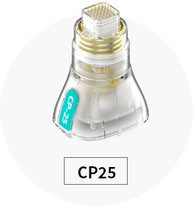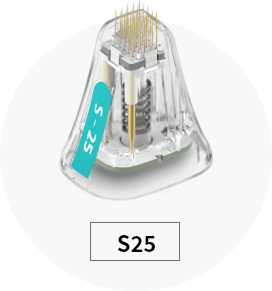 POTENZAではマイクロ単位の極細の針(外径0.25mm:約32G)※を用います。また、針を刺す速度と間隔、照射するRFの熱量を患者様にあわせて調整することで、より痛みに配慮した治療が可能です。