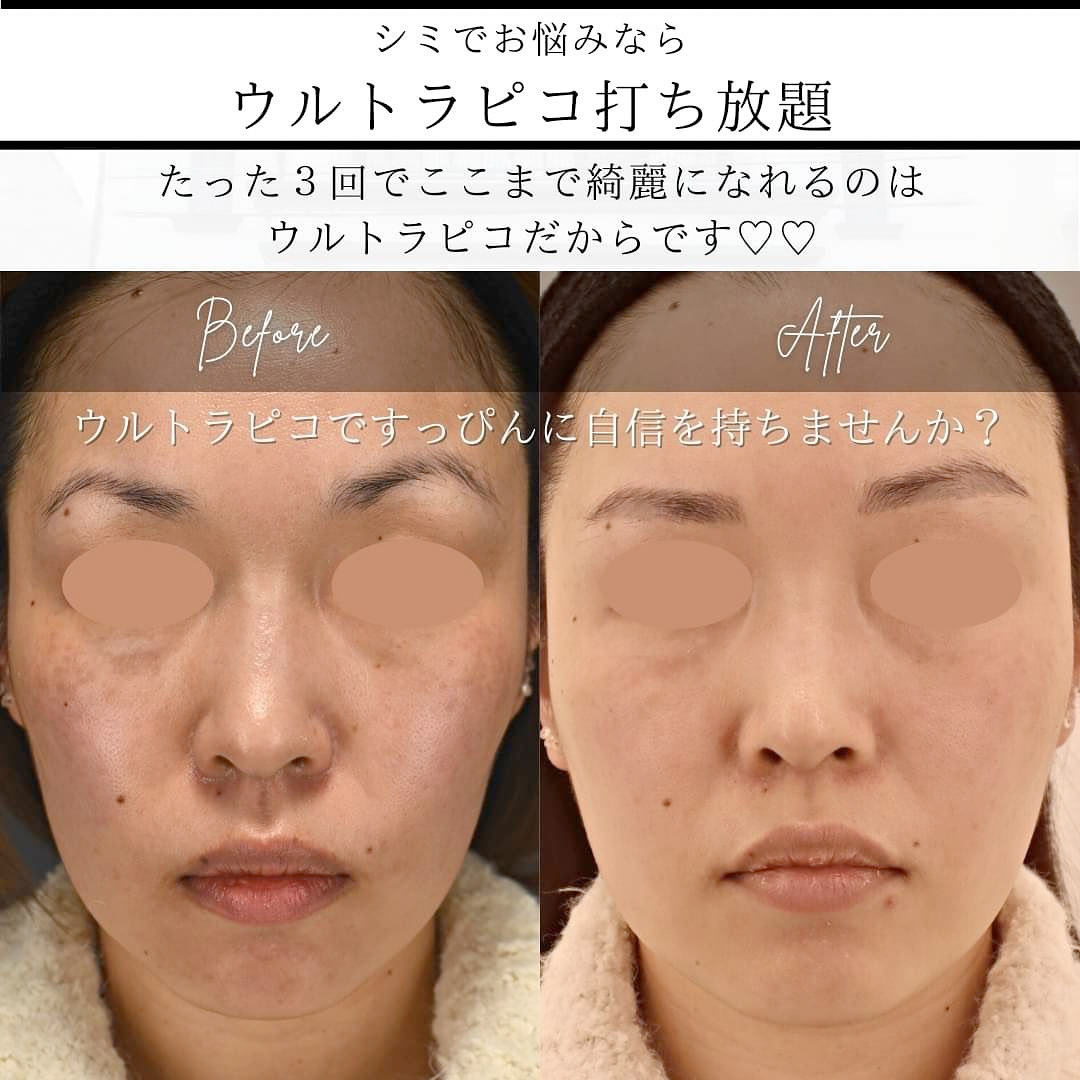 ウルトラピコ打ち放題オーダーメイド治療- 従来のナノ秒よりもさらに短いピコ秒で照射してシミや肝斑、毛穴の開き、小ジワなどの改善ができる治療