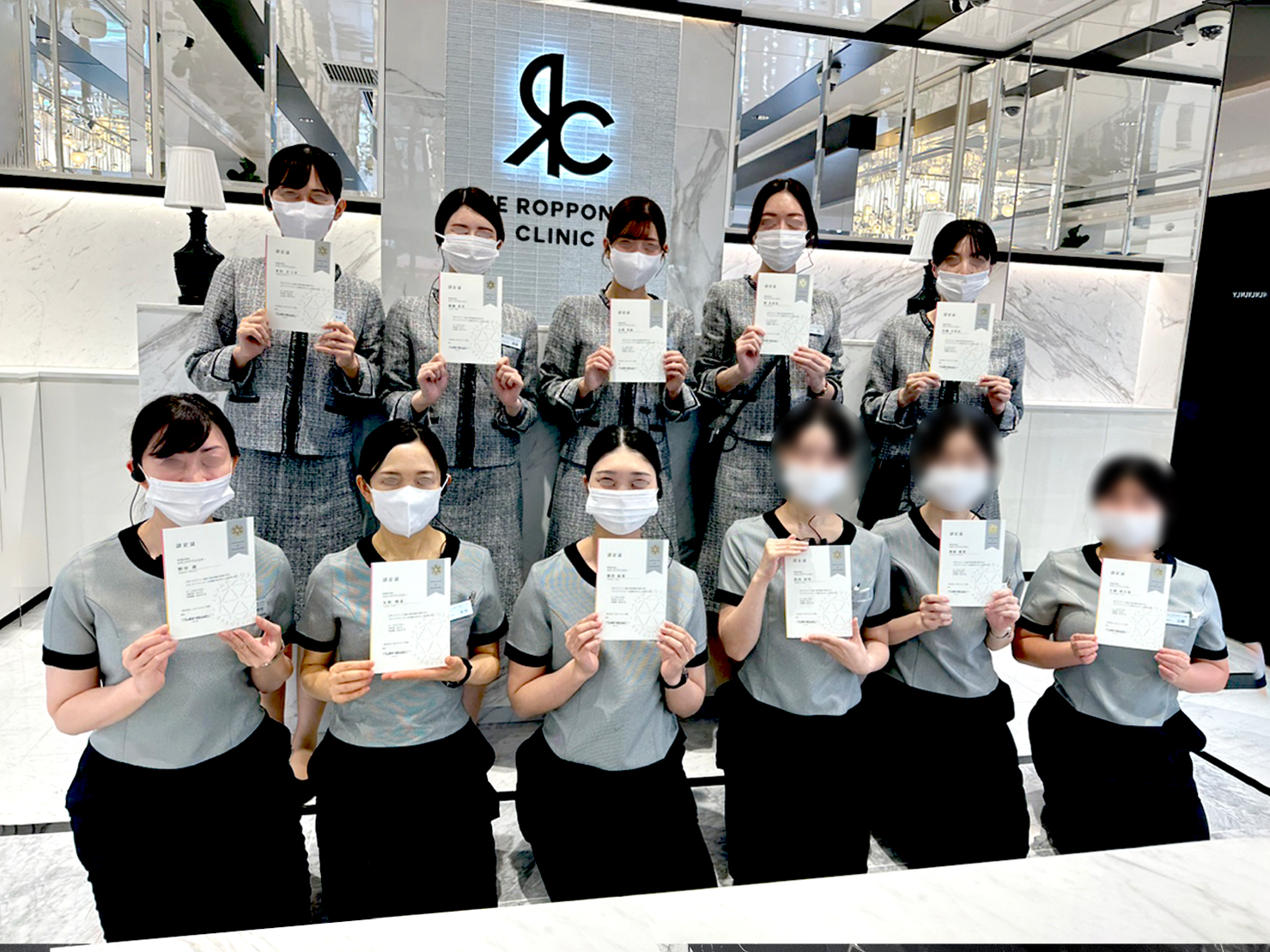 ザロクでは、 お肌のお悩み全般について、正確な知識をスタッフ全員が取得し、患者様お一人おひとりに真摯に向き合えるように、日本コスメティック協会による皮膚科学を基本とする美容に関連した総合知識、化粧品・美容総合検定「スキンケアマイスター」の資格をスタッフが取得することを推奨しております。